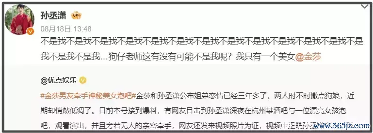 但在2025年依然有了危急,孙丞潇被曝“酒吧牵手”。娱记拍到酷似孙丞潇的男人半夜在杭州某酒吧与一位漂亮女孩泡吧,俩东谈主还亲密牵手。随后,孙丞潇转发否定是视频中的男人,并艾特金莎承诺“我唯唯独个好意思女”。金莎也积极转发互动,否定视频中的男人是男友。