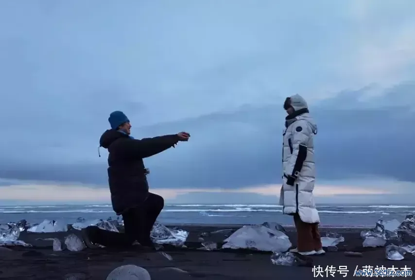 从两东谈主穿搭来看,这场求婚依然比拟随心,孙丞潇玄色羽绒服搭蓝色帽子,金莎银色羽绒服、灰色帽子搭红裤子,也算是“红蓝CP色”了。而他们选拔的求婚场所也有好意思好的寓意,“钻石沙滩”标识爱情像钻石和冰川雷同不朽。